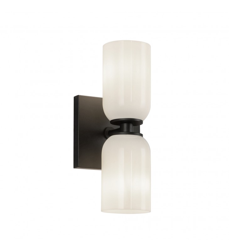WS57712-BK/GO-Nola 12-in Black/Glossy Opal Glass 2 Lights Wall Sconce