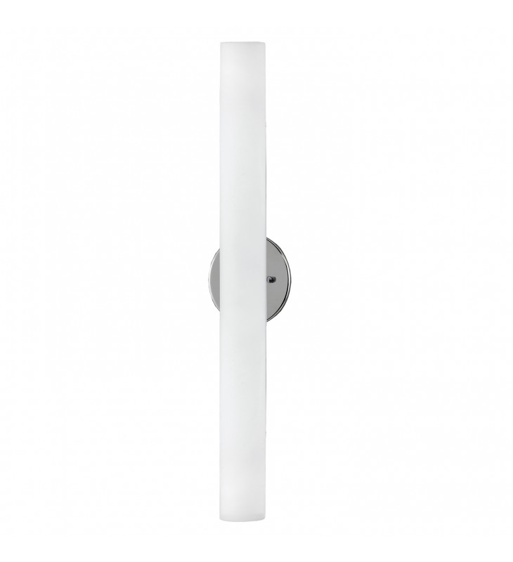LED wall sconce with cylinder shaped white opal glass. Metal details in brushed nickel or chrome finish and is equipped with our powerful 12V AC LED technology. Available in for two different styles and sizes, view series for more details.