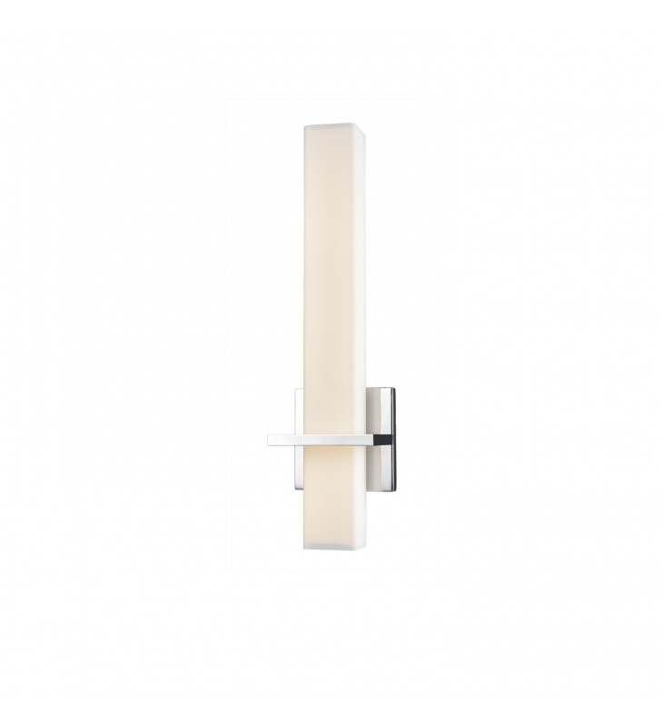 LED wall sconce with rectangular shaped white opal glass. Metal details in brushed nickel or chrome finish and is equipped with our powerful 12V AC LED technology. Available in for two different styles and sizes, view series for more details.