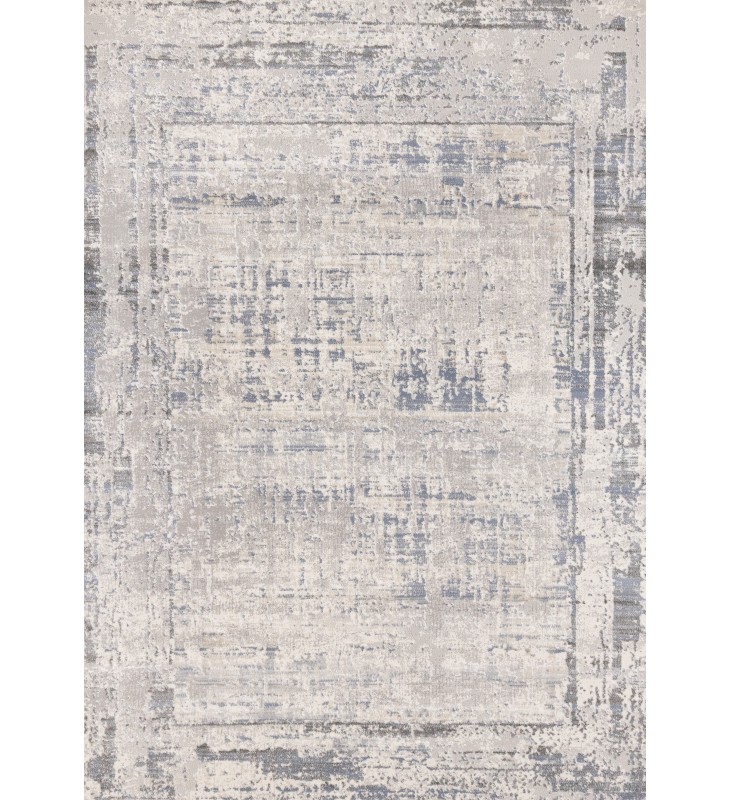 (F113/0454 160230)-Luca Grey White Blue Distressed Border Rug, 5'3" x 7'7"-(Kalora)