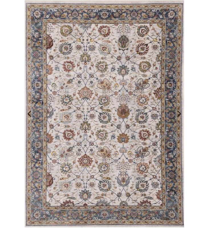 (G322/2717 160240)-Marisa Cream Blue Traditional Border Floral Rug, 5'3" x 7'10"-(Kalora)