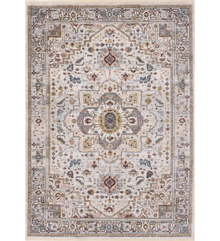 (G390/2565 160240)-Marisa Cream Beige Floral Medallion Rug, 5'3" x 7'10"-(Kalora)