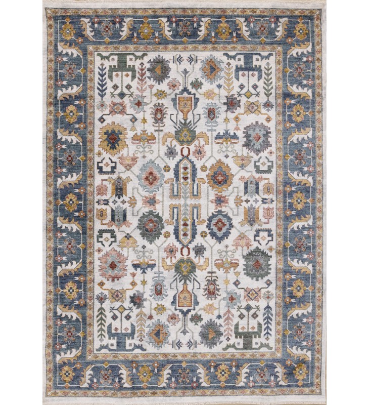 (G435/2717 240310)-Marisa Cream Modern Tribal Inspired Border Rug, 7'10" x 10'2"-(Kalora)