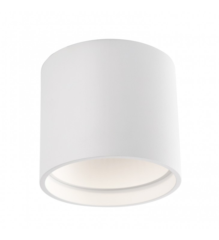 LED flush mount made from heavy gauge cast aluminum painted white or black, round cylinder shaped. Equipped with our powerful 12V AC LED technology, which shines through a high-precision spherical optical lens and reflects an impressive light off of the chrome anodized beehive surfaced reflector down into the room.