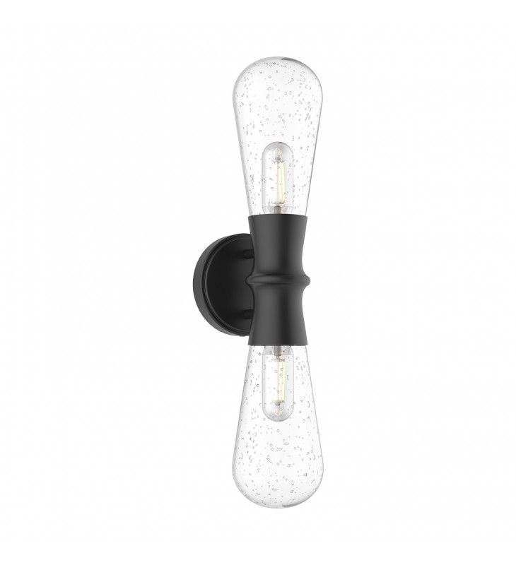 EW464002BKCB-Marcel 5-in Clear Bubble Glass/Textured Black 2 Lights Exterior Wall Sconce