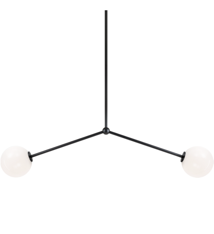 Novo is modern yet classic ¨C available in the form of chandelier, wall sconce, and flush mount. The rods and base are either Aged Gold Brass or Black finish paired with a contrasting Opal or Clear round glass and diamond shaped glass. The style is very versatile and will add beauty to multiple rooms.