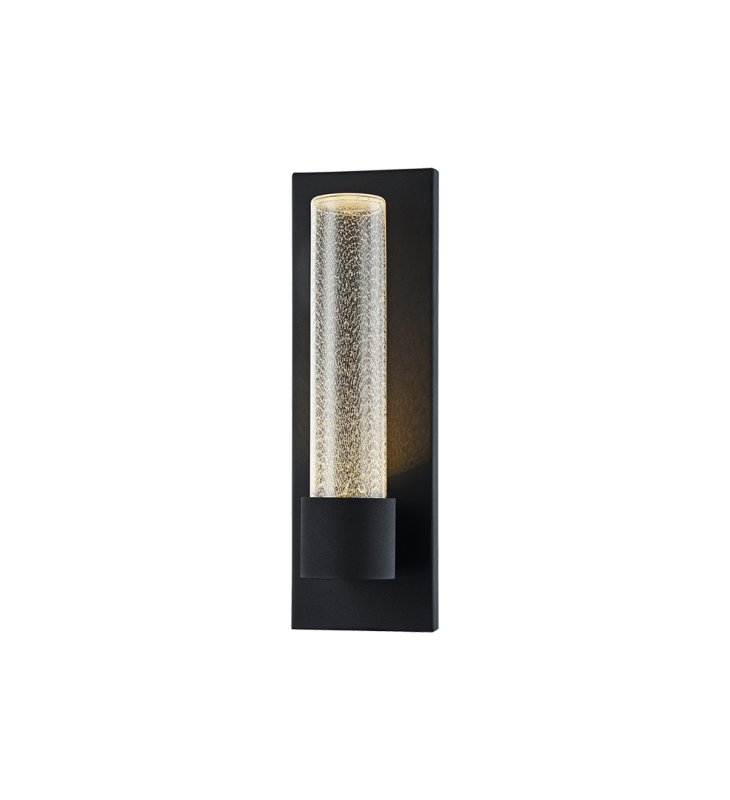 Likwid is a simplistic yet sophisticated wall mount series. Offered in an elegant Matte Black finish combined with a seeded water look glass shade. An LED non visible light source completes the style making it not only a beautiful piece but practical as well. It can be place in both dry and damp locations.