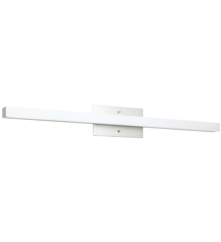 The simplicity of the sleek rectangular LED sconces with metal canopy and white acrylic lens in any modern space. Available in 2 sizes and 2 finishes ?C Aluminum & Matte Black.
