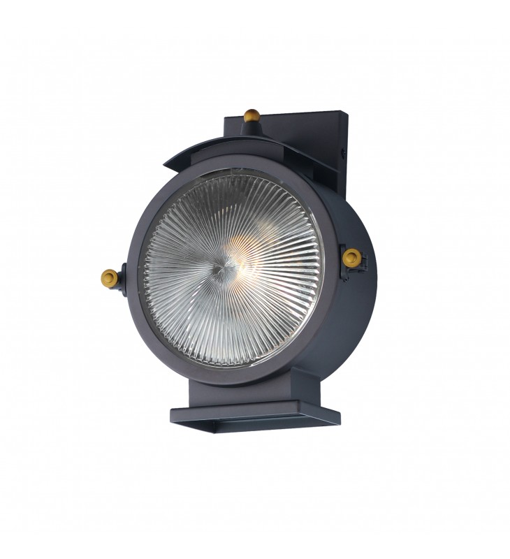 This nautical design features a solid dome of aluminum finished in Oil Rubbed Bronze with solid brass hardware finished in Antique Brass. The Clear prismatic glass diffuser completes the authentic look of this outdoor collection.