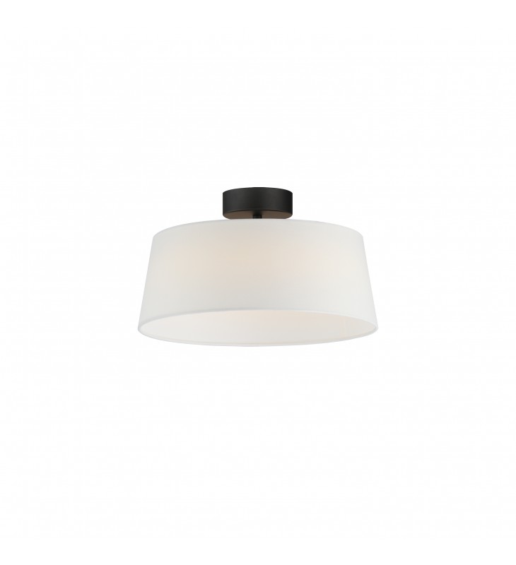 Truncated tapered cones of linen shades diffuse light from an LED ring within them. The LED lighting offers ample illumination that is softly diffused behind the shade. A two-pronged fork detail supports the ring within further modernizing this transitional look. Available in Natural Aged Brass with an Off-White Linen shade or Matte Black with a White Linen shade, these pieces conveniently coordinate with most interiors.