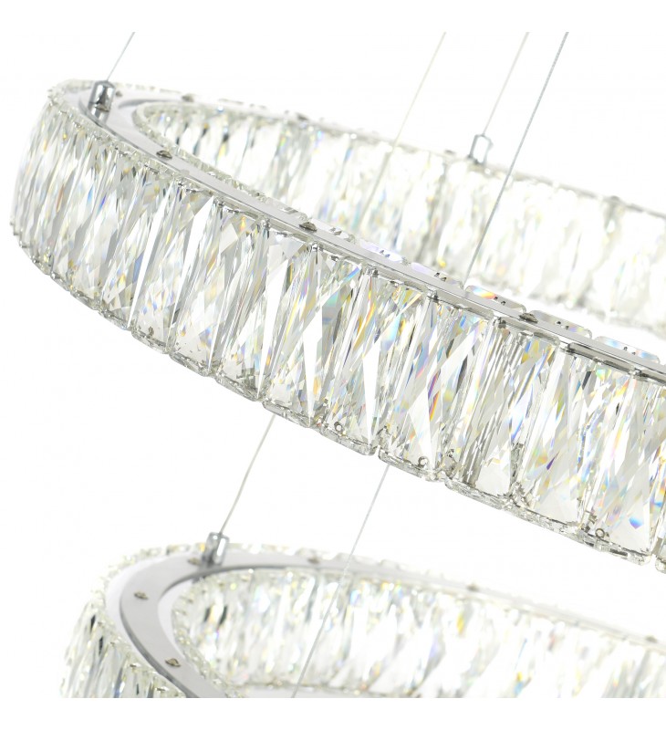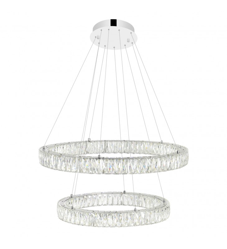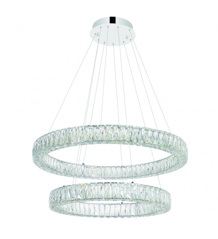 Instantly create a classy atmosphere in your living room with the Madeline 2 Ring LED Chandelier. Two concentric halos of light hang from adjustable cords connected to a round chrome canopy. This down chandelier embodies the high life and is completely capable of jazzing up a high-ceiling, open concept floor plan.