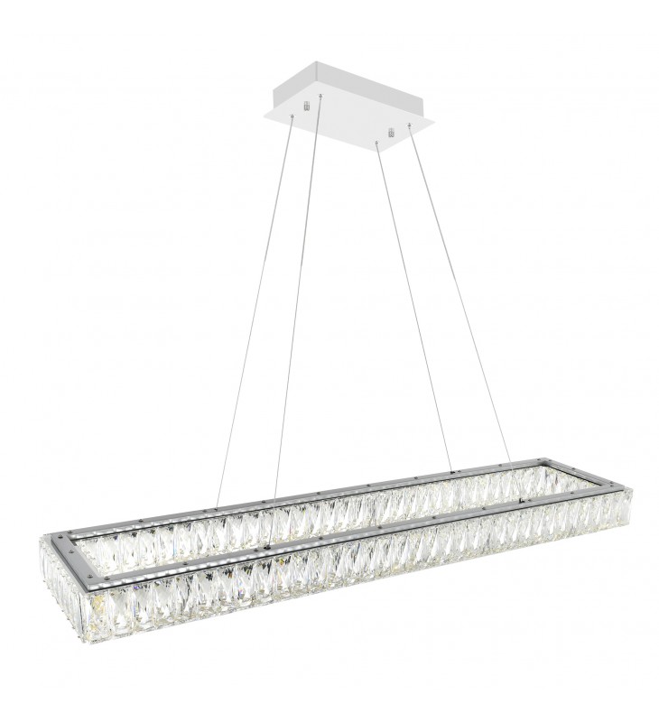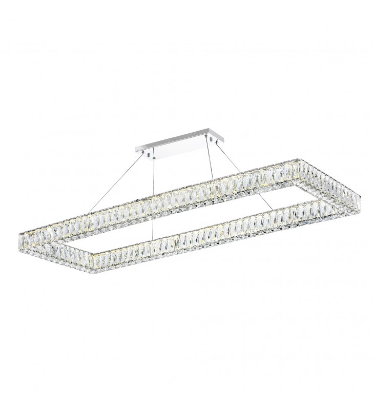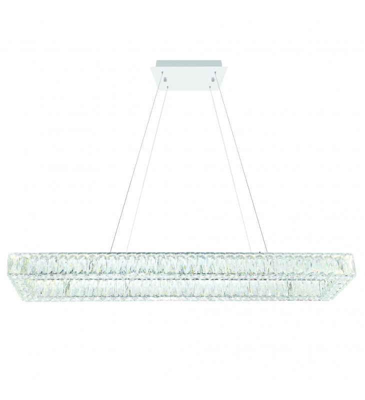 The Felicity 1 Tier 52 inch Rectangular LED Chandelier beautiful combines sparkles and lines. This chrome-finished light fixture has a 52 inch long rectangular frame all wrapped in LEDs and glittering crystals. Its dynamic silhouette is at its radiant best! This light fixture is guaranteed to be a fabulous addition to your dining room or kitchen.