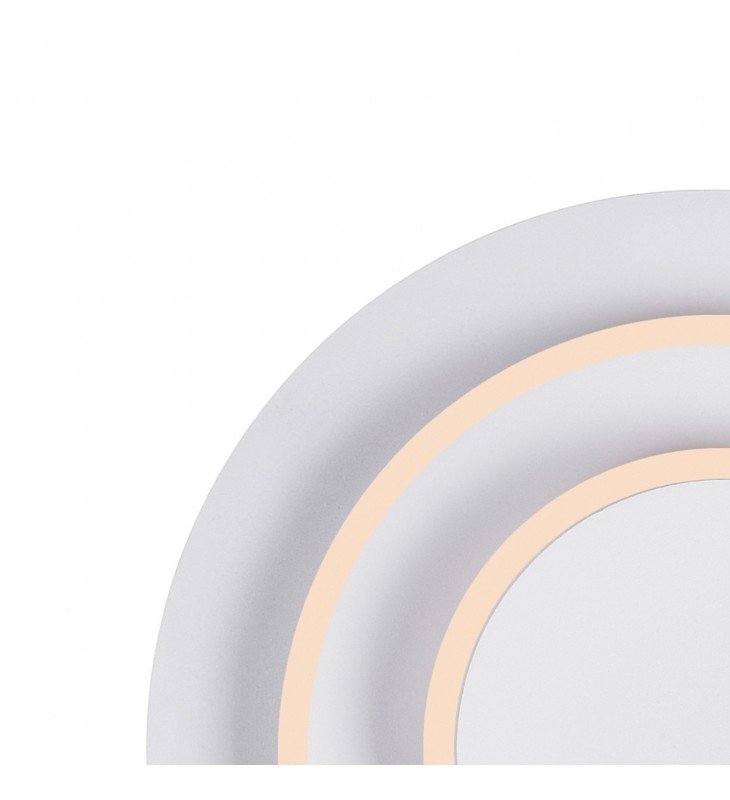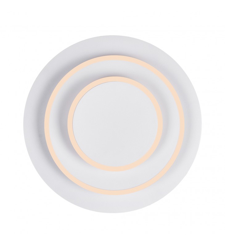 Add a layer of light to your favorite space with the Private 1 LED Circle Trio White Wall Sconce. This lighting option rests flat on the wall so you don\'t have to worry about fixtures sticking out especially in a narrow space. The concentric circle design is visually eye-catching and helpful in diffusing an soft, even glow across a space. Finished in matte white, this light source will look perfect in any space.