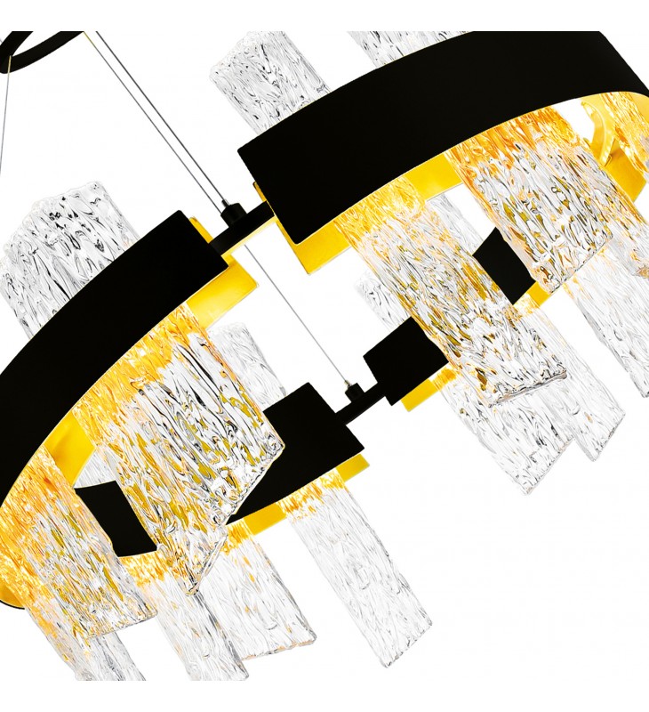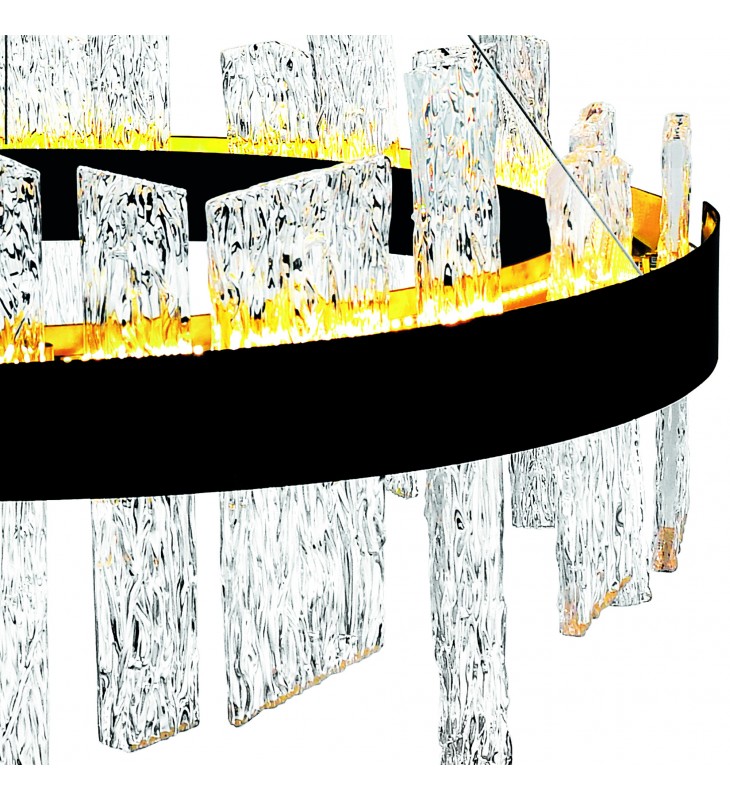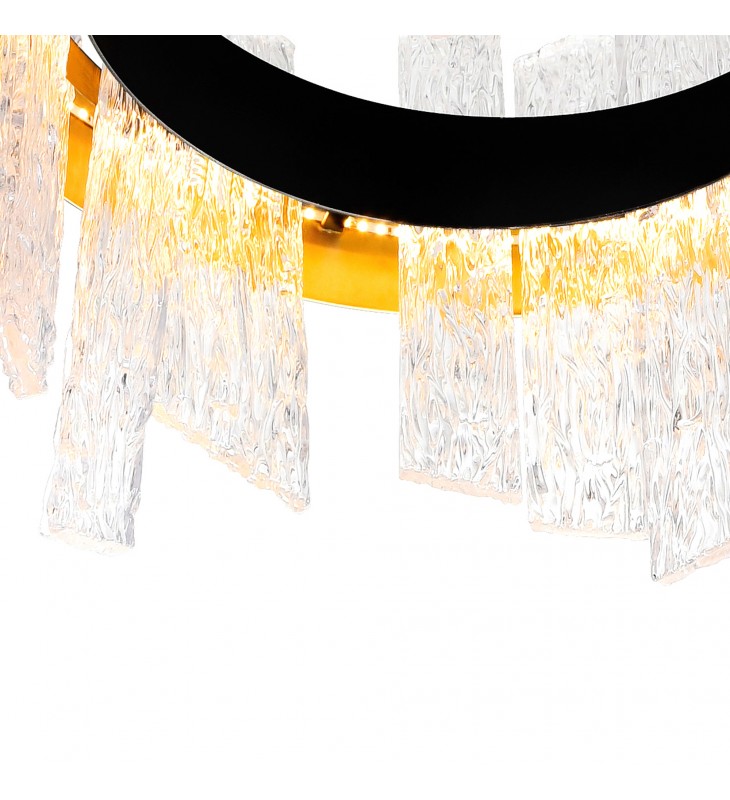 A great choice for many different rooms, the Guadiana Black 24 inch LED Chandelier packs a major style punch. It has the perfect style contrast given the black metal and clear glass material plus the combination of straight lines and curves. This modernistic and energy-efficient LED light fixture provides general ambient illumination while also serving as a statement-making decor.