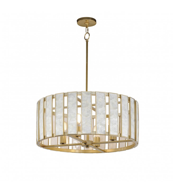 Classic in form and evoking the sea, laminae of Capiz shell are framed in paneled drum shapes. The Natural Aged Brass finish refines the coastal elements and complements the warm glow from behind the translucent panels. Available in multiple configurations of pendants as well as tiered chandeliers as well as a tall ADA-compliant wall sconce, the collection offers a sophisticated approach to coastal design.