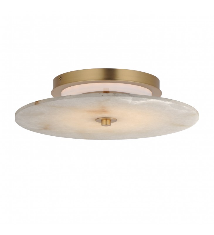 Modern in execution, the Quarry collection features natural Spanish alabaster in an iron frame finished in Darkened Bronze or Natural Aged Brass. Dedicated LED housing shine light on alabaster panels, highlighting the stone\'s beautiful, veined characteristics while also providing ambient lighting. These surface mounted fixtures are designed to install on either wall or ceiling surfaces.