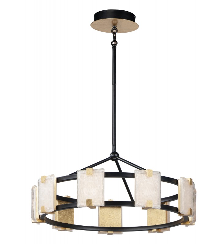 Piastra style glass diffuses integrated LED to shimmer radiantly. Suspended on a Black frame with Gold Leaf accents, this perfect blend of contemporary and traditional design adds glamour to a broad spectrum of design aesthetics.
