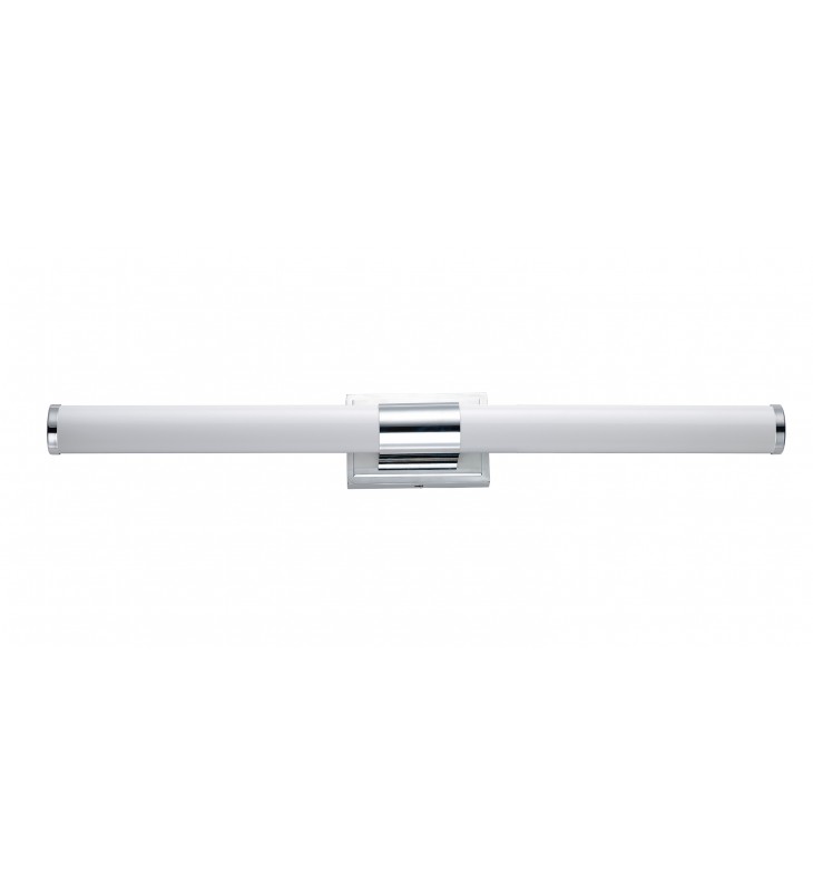 Cylinders of White cased glass are mounted onto a cast aluminum frame of Satin Nickel or Polished Chrome. LED modules evenly illuminate and provide soft yet ample illumination. Multi volt input is standard which allows for installation into commercial applications.