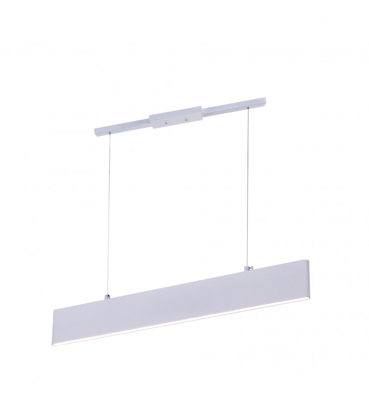 The long and lean Satin White Krista 25 inch LED Chandelier displays a streamlined simplicity that\'s irresistible. The slim design of this rectangular linear pendant light makes it an interesting fixture to suspend on your ceiling. Providing uniform illumination, this slender linear chandelier distributes ample task lighting without glare. The long length and direct illumination it provides is perfect lighting kitchen islands, pool tables, and work surfaces.