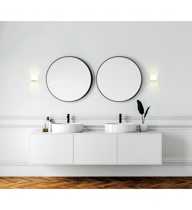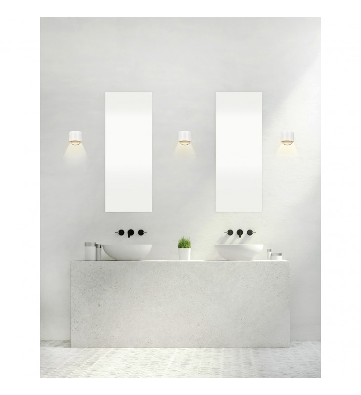 The Lilliana White Round LED Wall Sconce is a versatile light source that offers a comforting wash of light. The steel fixture has a circular wall plate holding a 6 inch cylindrical shade. Use this light to create an ambiance and open up spaces that feel cramped. When used for mood lighting, this modern sconce can instantly make a room feel complete.