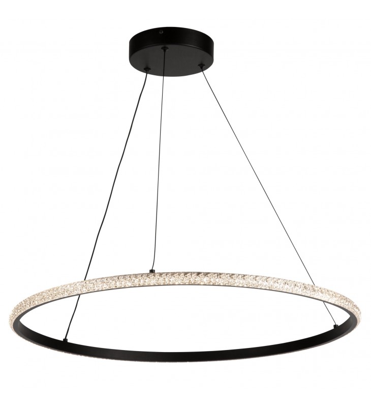 The Nova collection simply looks like jewelry suspended on thin cables. Illuminated by bright energy efficient LEDs the crystalline components sparkle from every angle. The frame, canopy, and wiring is black. (These models are dimmable with appropriate LED rated dimmer switches)