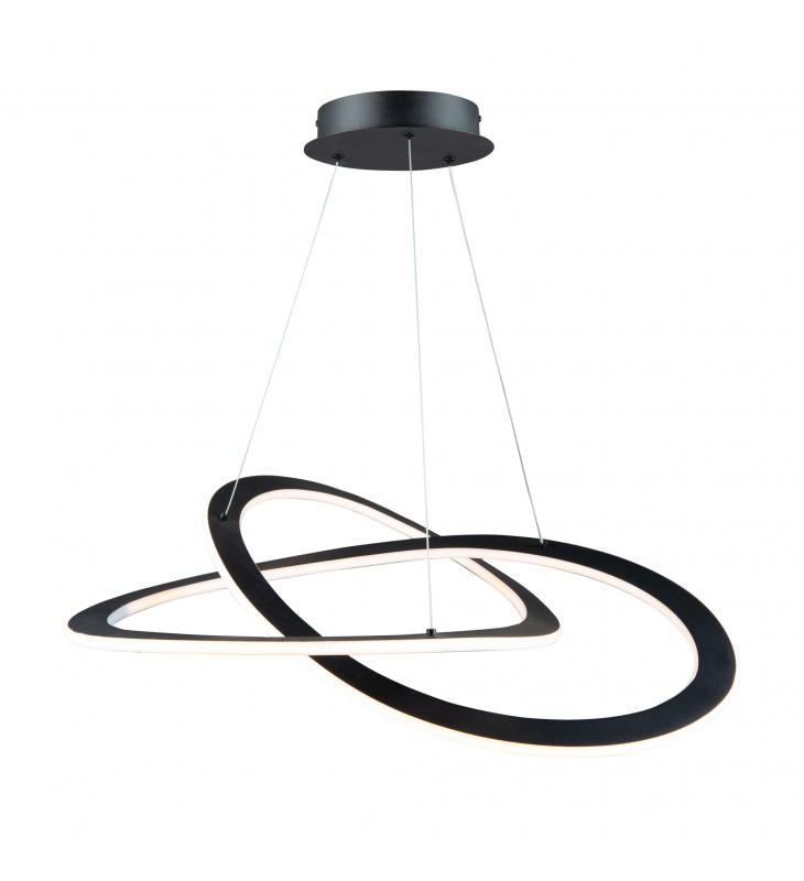 The \"Wave Collection\" is named after its curvy organic design. A perfect addition to any modern to transitional setting. The chandelier is finished in a semi gloss black and is suspended by aircraft type cables. It is illuminated by bright energy saving LED technology. This large chandelier is available in a smaller version with a semi flush to match.