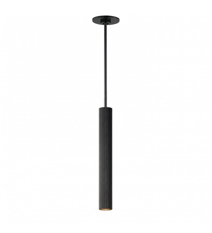 Reeded glass tubes are paired with ribbed aluminum LED housings in your choice of Gold or Matte Black finishes. The interior frosted glass diffusers soften the high-powered LED boards concealed within. The low-voltage light sources are driven by a commercially rated range voltage LED drivers with universal dimming, allowing them to be used in both residential and decorative commercial or hospitality applications. ADA compliant sconces are a welcome companion to the series as well as the fully metal stem hung pendant option designed without glass and uses a JA8 Listed LED GU10 lamp instead of dedicated LED.