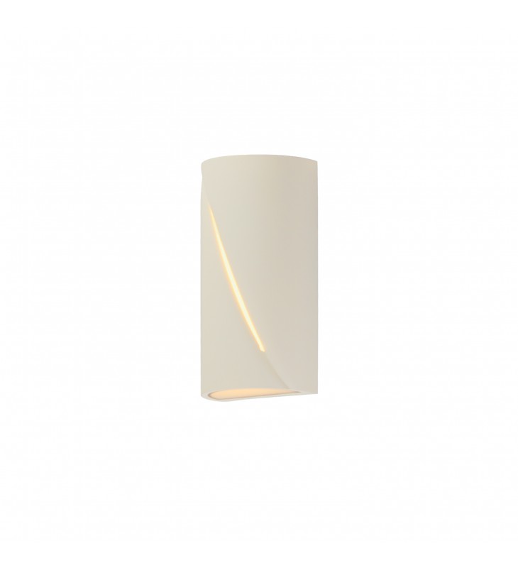 Softly rounding forms are constructed of outdoor-rated concrete molds. Finished in Greystone or Chalky White, these sconces are both playful and sophisticated. A diagonal reveal along the fixture\'s body emits light while also casting light above and below the fixture.