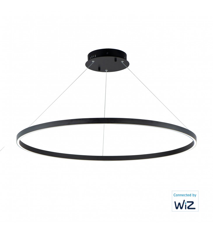 Simple rings formed out of aluminum channel are connected by WiZ. Available in your choice of Matte Black or Brushed Gold, these modern staples of lighting design are enhanced by a groove of LED downlight enabled with smart control functions and features. When connected by WiZ, authorized users can tune the color temperature, set lighting schedules and routines, and freely adjust the temperature of the lighting to match their interiors or set a mood.