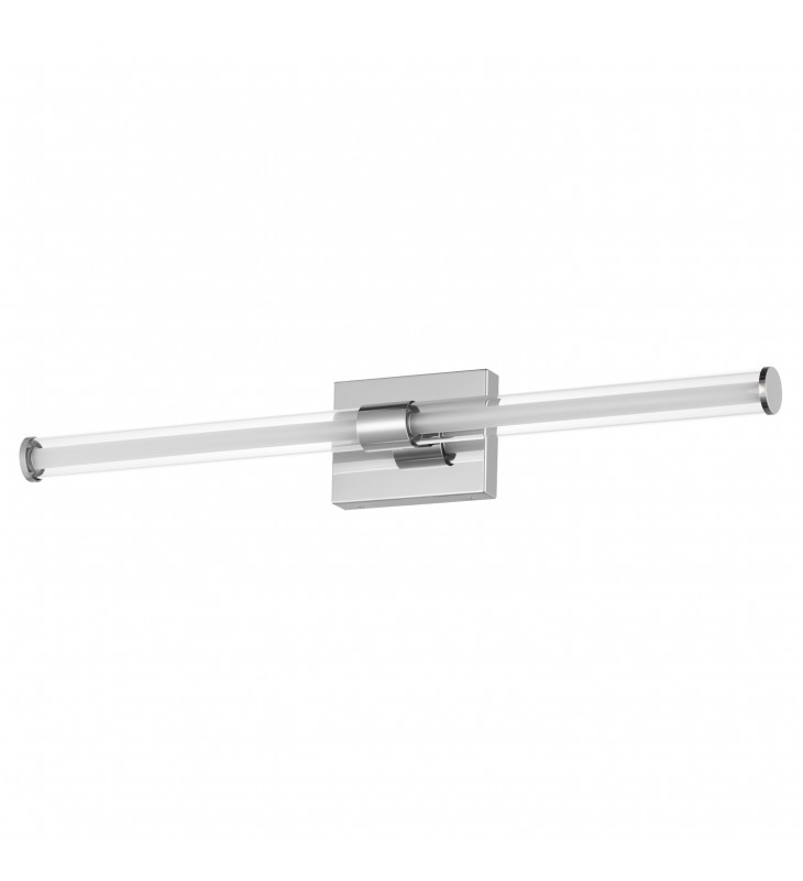 Within the void of clear glass, a white cylindrical tube of LED light extends in two directions. The evenly distributed light source can be adjusted to 5 selectable color temperatures, from warm 2700k to a cool 5000K and neutral white light sources in between. Available in three finish options: matte Black, Natural Aged Brass, and Polished Chrome, these sconces are great for use in bathrooms and along corridors with extensions less than 4 inches for ADA compliance.