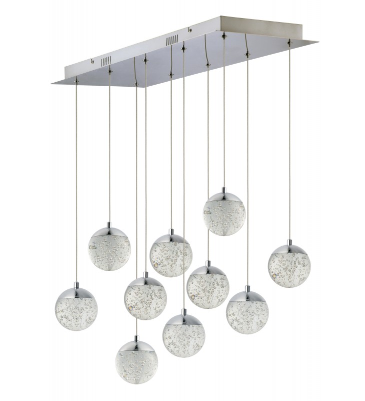 We took this popular collection and made it better. We took the xenon bulb out of the middle and enclosed a LED module in the cast Polished Chrome cap that supports the clear bubble glass balls. The glass screws into the cap so there are no visible screws for a very clean look.