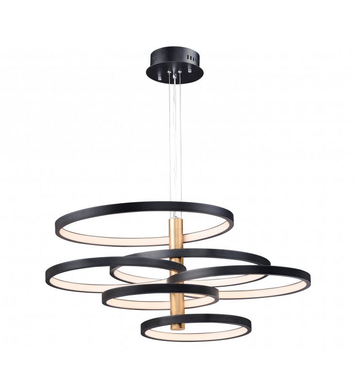 Rings of various sizes finished in Black are supported from a column of soft Gold. This European classic is a soft contemporary design which works in today\'s home decor.