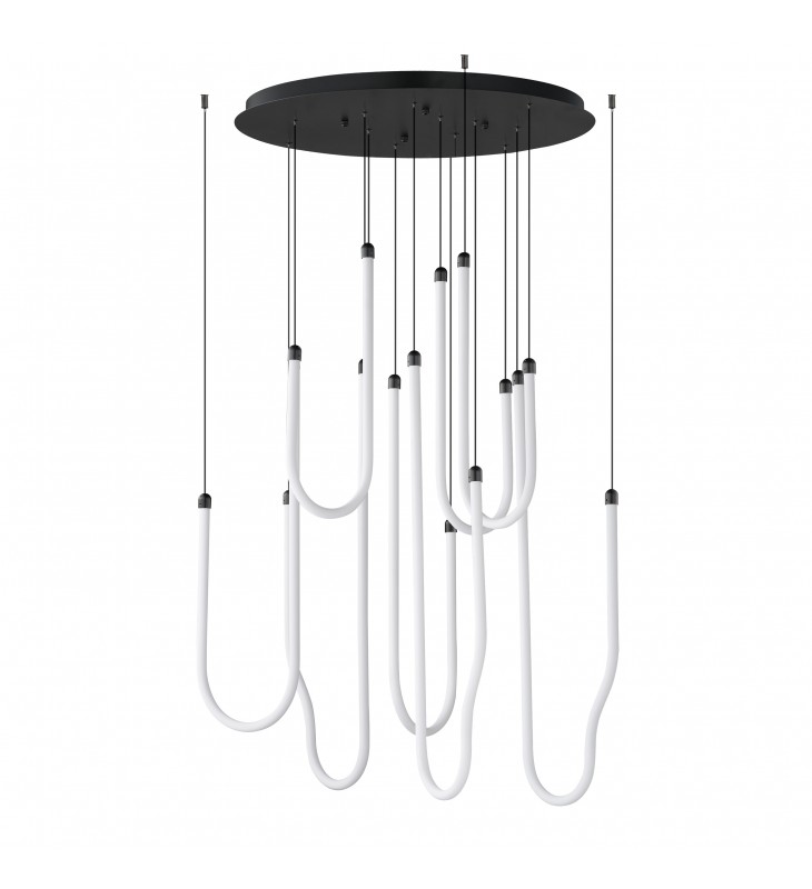 Sweeping matte white acrylic tubes encase an omnidirectional LED light source, arranged in abstract configurations inspired by solar flares. Minimal in composition yet dramatic in form, the Soleil collection offers a striking lighting solution. Available in a range of sizes, including fixed flush mount and field-adjustable pendant configurations, Soleil is offered in Polished Chrome, Matte Black, and Natural Aged Brass, making it a perfect complement to a variety of interior color schemes.
