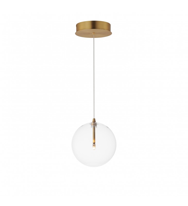 An airy configuration of Clear blown glass globe shades in various sizes suspend on thin low voltage wires. Thin tubes finished in Black or Gold descend into the center of the globes where a small G4 LED lamp provides a spark of light.