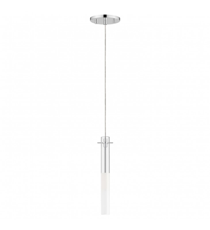 Slender Clear glass tubes sheath a Polished Chrome rod that supports small LED lamps. The glass is etched at a dividing line in the glass to softly diffuse the light. Available in two lengths of glass tube, the pendants are also available in multiple configurations that create a modern candle-like cluster. The surface mounted option supports the glass on a structure that allows it to hang freely for dual purpose as a ceiling flush mount or a hanging glass shade when mounted to a wall. JA8 Listed LED G9 lamps are provided for efficient lighting and reduced energy consumption.