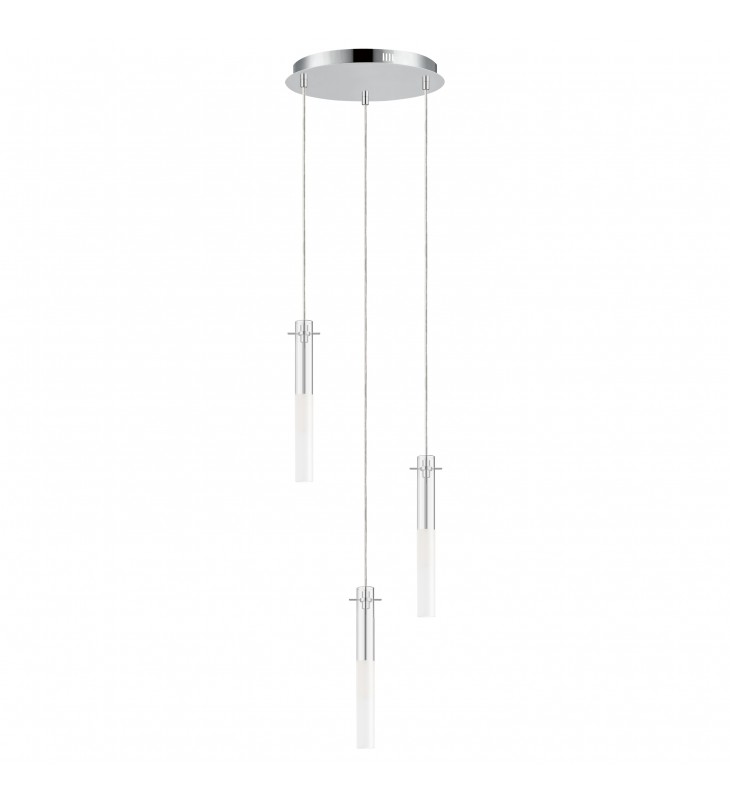 Slender Clear glass tubes sheath a Polished Chrome rod that supports small LED lamps. The glass is etched at a dividing line in the glass to softly diffuse the light. Available in two lengths of glass tube, the pendants are also available in multiple configurations that create a modern candle-like cluster. The surface mounted option supports the glass on a structure that allows it to hang freely for dual purpose as a ceiling flush mount or a hanging glass shade when mounted to a wall. JA8 Listed LED G9 lamps are provided for efficient lighting and reduced energy consumption.
