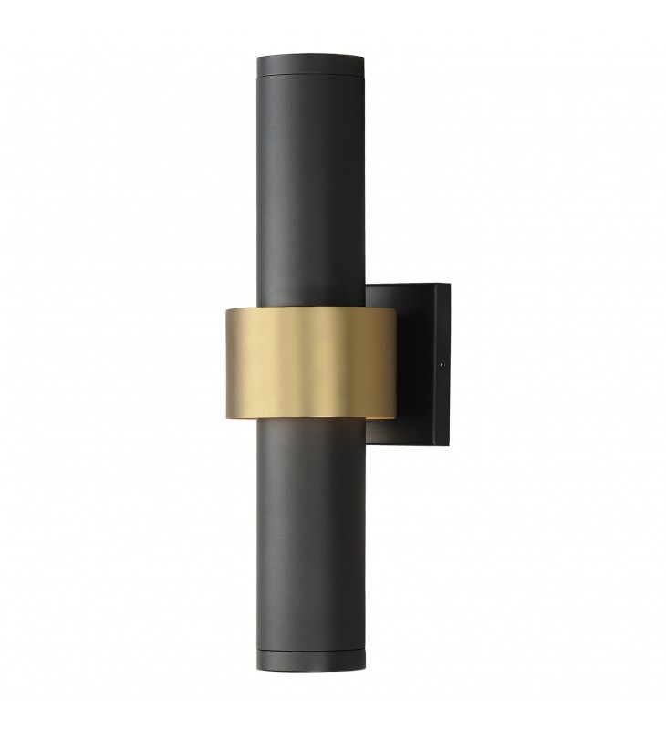 Inspired by the best-selling indoor series, this popular collection has now been created to enhance your outdoors. Tubular shaped sconces finished in Sandy Black with a Gold stainless steel band provide light from the bottom as well as a reveal behind the band. The soft glow of light from the band creates a beautiful lighting effect. Made of non-corrosive materials for longevity outdoors, this collection will suit both indoor and outdoor applications.