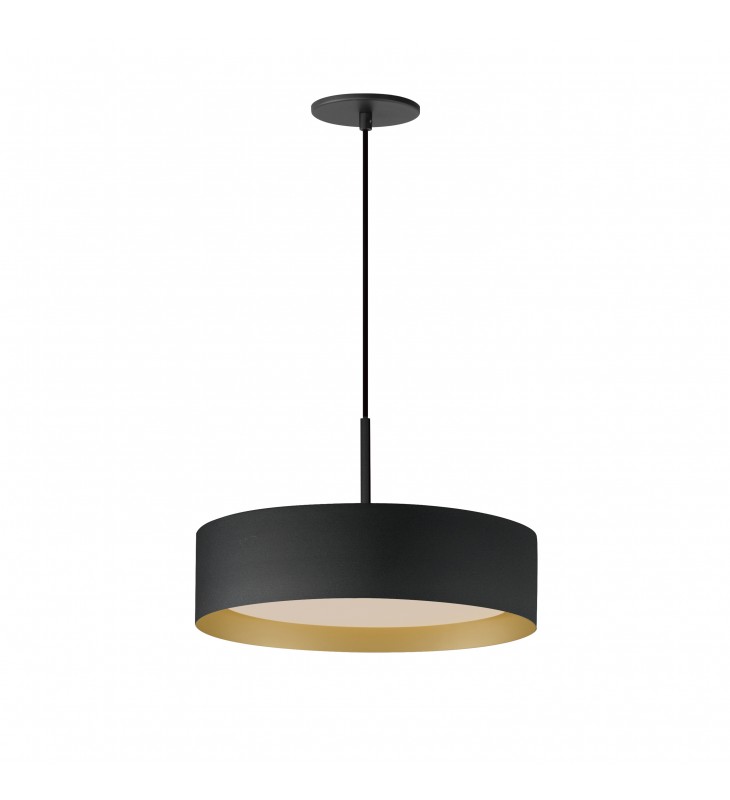 Surrounded by a metal drum shade in a variety of sizes and finishes, an internal shade constructed of acrylic evenly diffuses bright LED illumination. Designed for simpler installation and in an aesthetically pleasing silhouette, these practical metal drum shades are offered in Matte White both inside and out, or enhanced by gold or black interiors for reduced glare and stylish design. The series also features a chic Black with Gold interior color combination shade. To round out the collection, all these color options are also made compatible with a pendant accessory that quickly converts the flush mount fixtures into drum shade pendants.