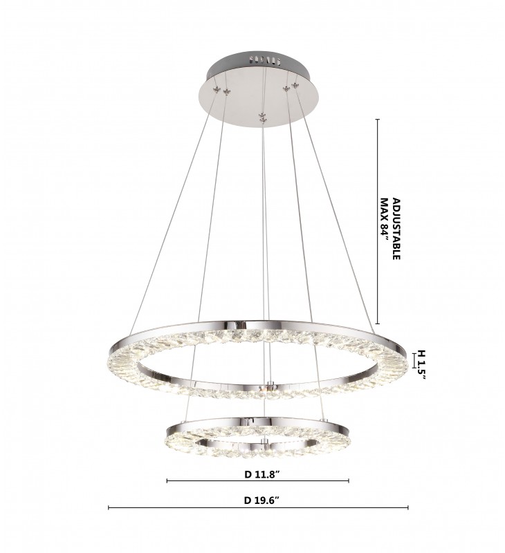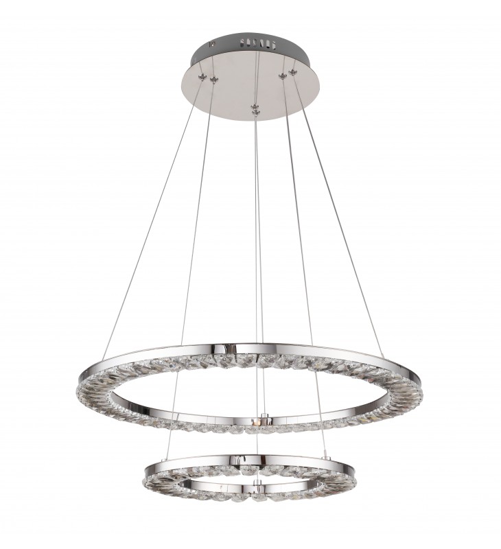Two Tier Double ring Clear Crystal LED Light Fixture With A Chrome Stainless Steel Frame
