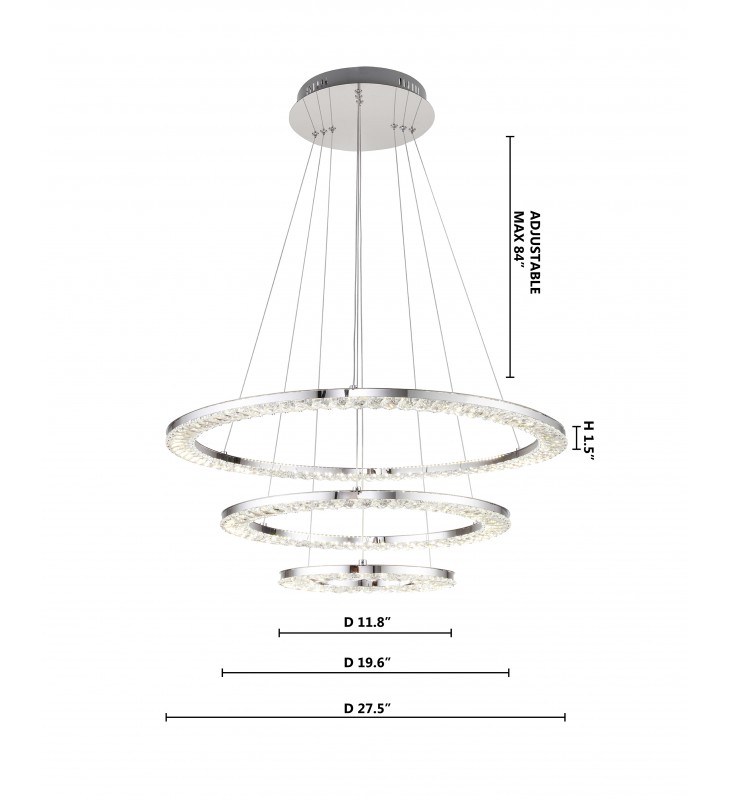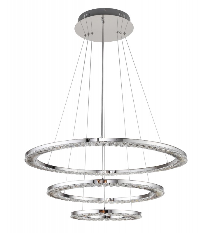 Three Tier Clear crystal Ring LED Light Fixture With A Chrome Stainless Steel Frame