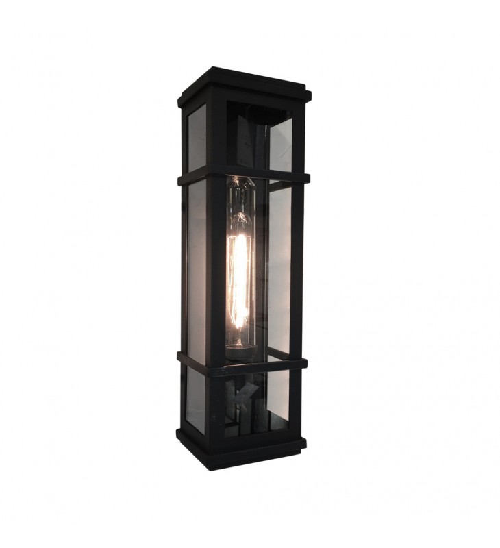 The \"Granger Street\" collection of modern exterior lighting designed by S&C, has clear glassware which is frame in its precise linear frame. Shown in black and available in stainless steel. \nDue to the California Title 20 regulations, replaceable light bulbs will not be included with any product sold to customers in California.\n\n\n \n \n