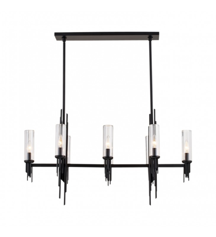 LP335838MBCR-Torres 38-in Clear Ribbed Glass/Matte Black 8 Lights Linear Pendant