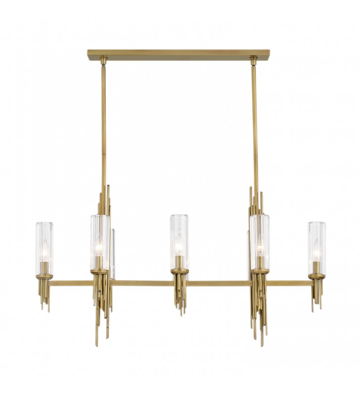 LP335838VBCR-Torres 38-in Ribbed Glass/Vintage Brass 8 Lights Linear Pendant