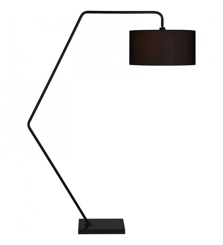 Floor Lamp - Iron - Matte Black Finish - Black Linen Shade - Black Marble - Foot Switch - Max. 100W - E26 Socket
