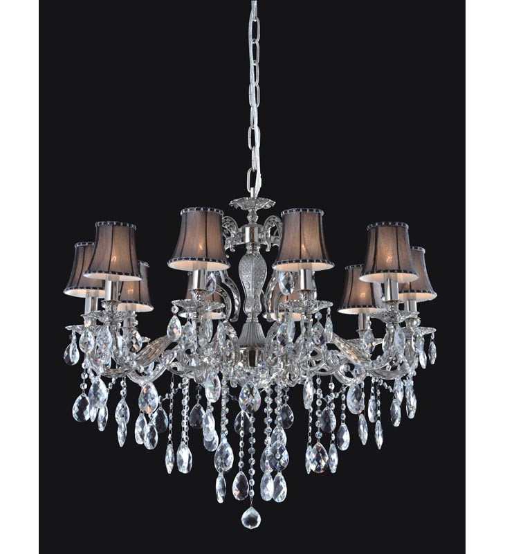 10 Light crystal chandelier (E12) candelabra 40w w/ black or white fabric shade (1122C10)