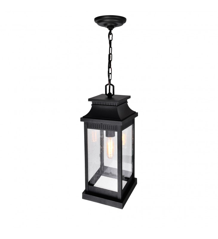 Ready to shine an abundance of light onto your space is the Milford 1 Light Long Outdoor Black Pendant. It features a classic lantern silhouette with its black metal frame and clear glass shade panels. When paired with a filament bulb, this hanging outdoor lamp with adjustable height can bring ample illumination and style to your outdoor entertainment area.