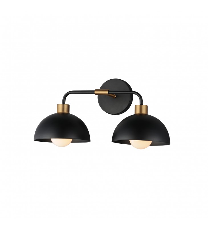 Dome shaped shades in Matte Black contrast Natural Aged Brass accents. Available in flush mount, bath vanity, and swing arm wall sconce configurations. This collection delivers an approachable, modern design that pairs well with transitional design aesthetics.