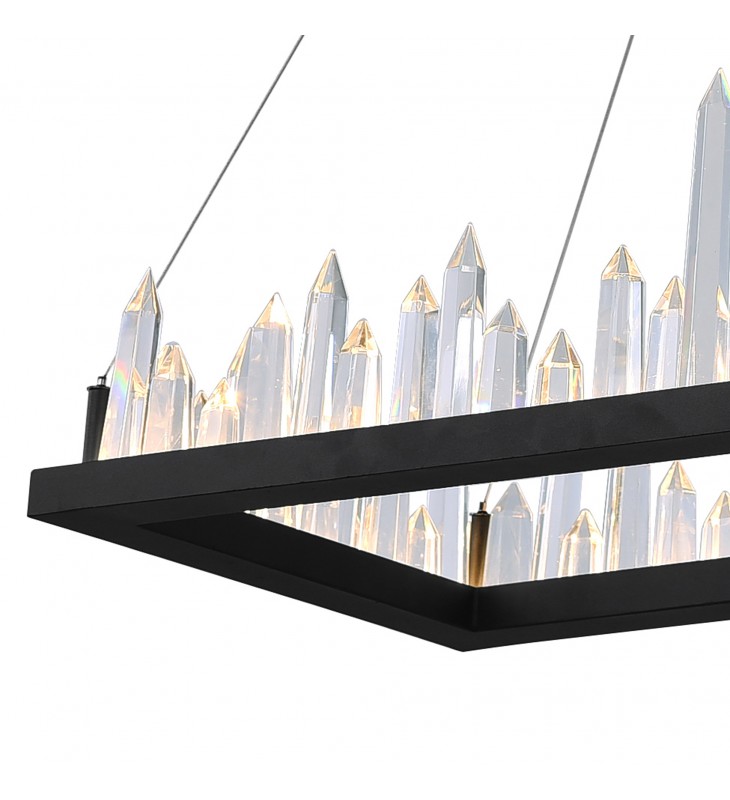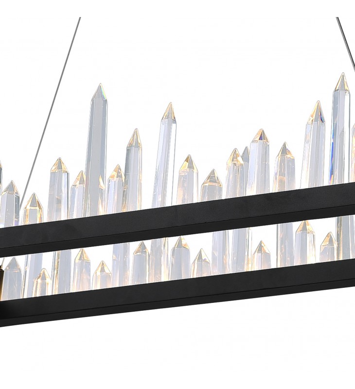 Get this Juliette 44 inch LED Island/Pool Table Chandelier and add a cutting-edge style to different areas in your home. Ideal for installation in dining rooms, kitchens, foyers, and man caves, this transitional luminaire deliver a luxurious glow to a space thanks to its crystal prisms integrated with LED chips. The black rectangular canopy and pendant frame gives this lighting option a modern inchdustrial appeal.