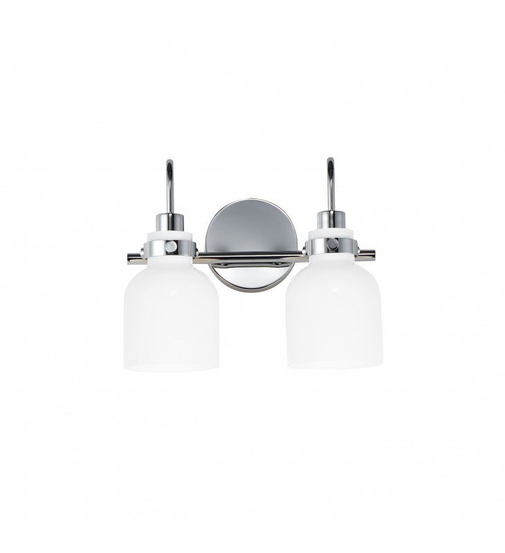 Celebrate nostalgia using these sconces that feature opal White glass shades in a bell shape. Supported on rings of metal in your choice of Polished Chrome or a bolder two-tone Black and Satin Brass, this refreshing take plays into a retro aesthetic of your bathroom decor. Available in various lengths of bath vanity lights or single sconces.