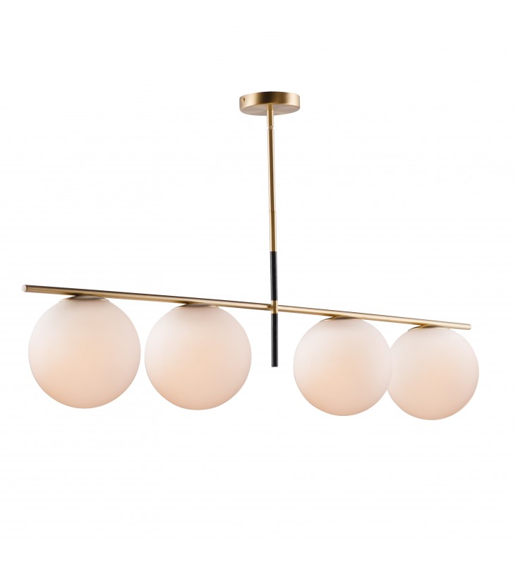 Inspired by both Mid Century Modern and Scandinavian Contemporary this collection spans a large breadth of today\'s interior design. Straight tubing finished in Satin Brass supports hand blown Satin White cased glass globes. Black accents of metal and Black marble add dramatic detail and upscale appeal.